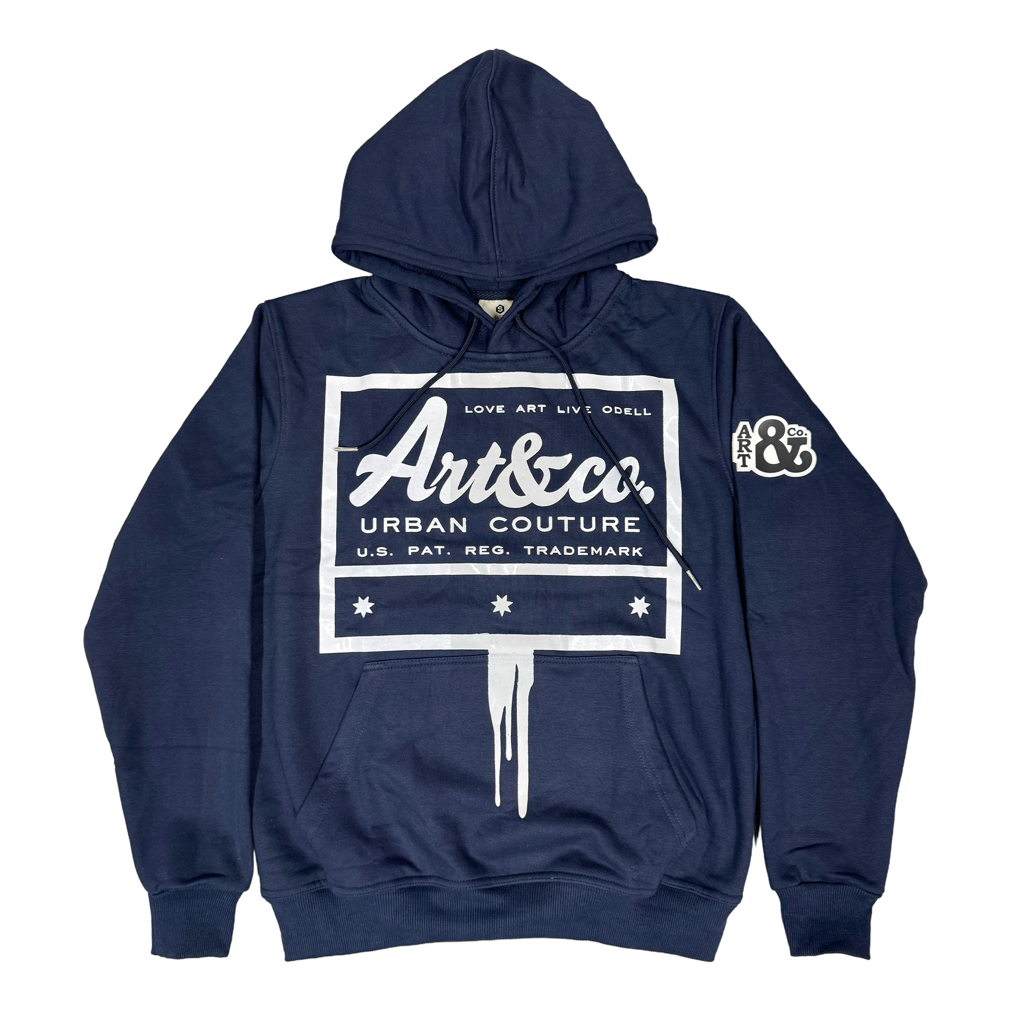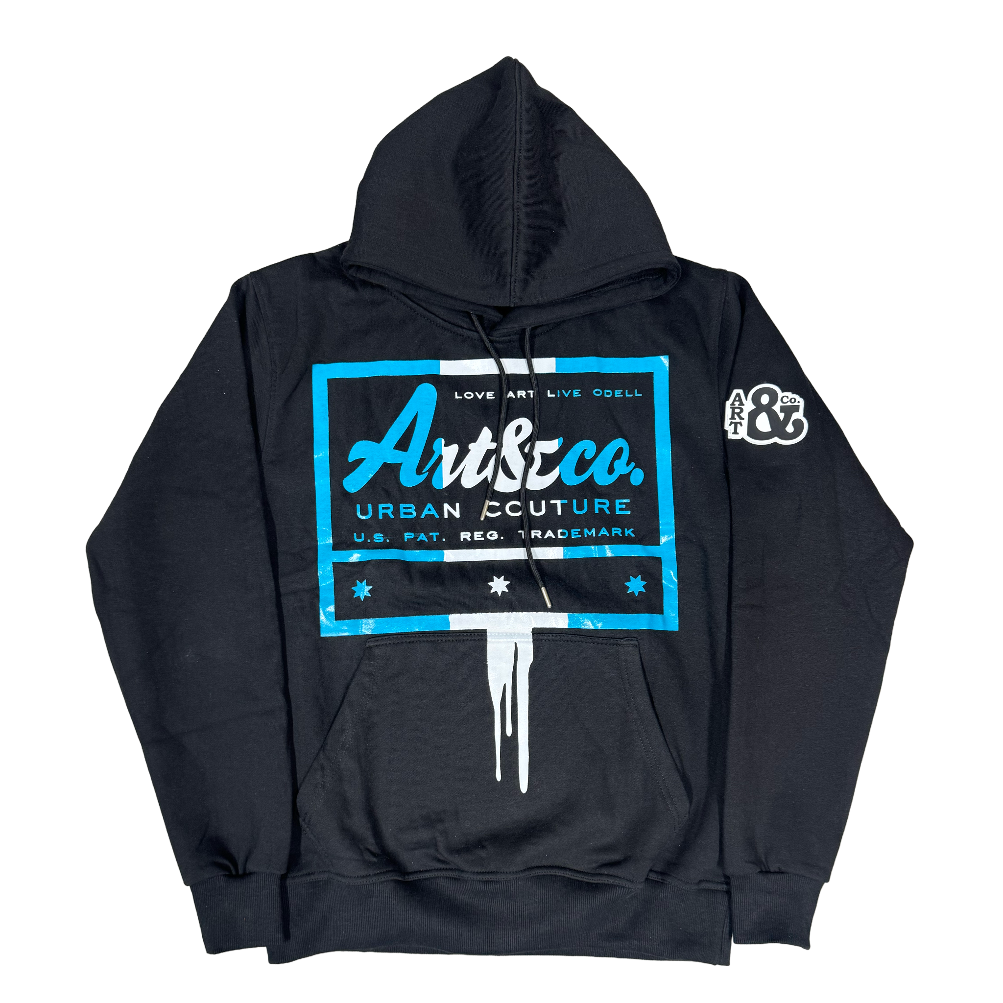 A signature vertical drip cuts through the graphic, symbolizing that exact moment pressure meets clarity. The right sleeve’s Art & Co. ampersand patch stamps the piece with unmistakable brand identity.